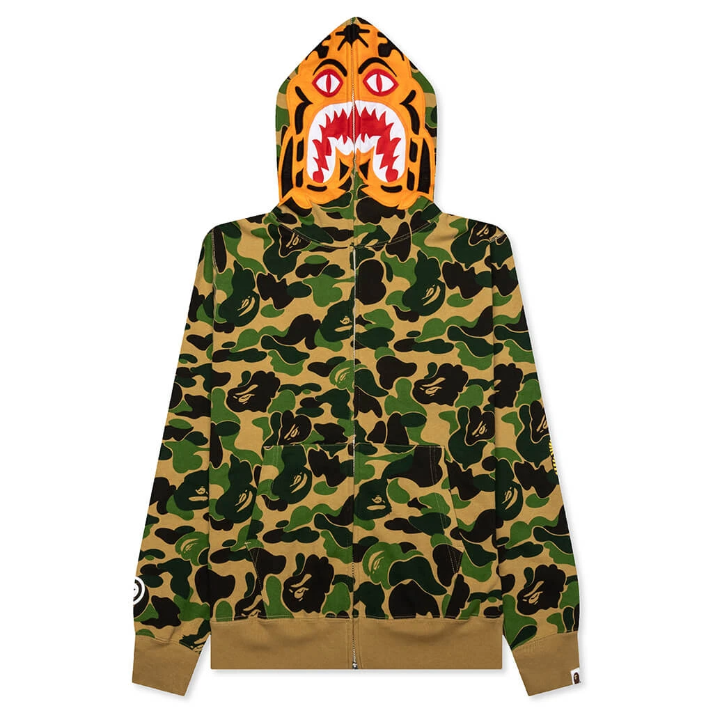 Composed of cotton, the A Bathing Ape Abc Camo Tiger Full Zip Hoodie in Green takes on a premium aesthetic. The silhouette features a full-zip closure in addition to ribbed detailing that can be found at the trims. The kangaroo pocket is seen, while the signature hood spotlights embroidered patchwork and printed motifs that spotlight the brand’s heritage.