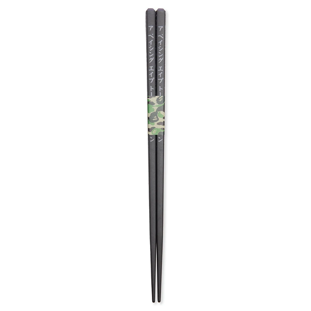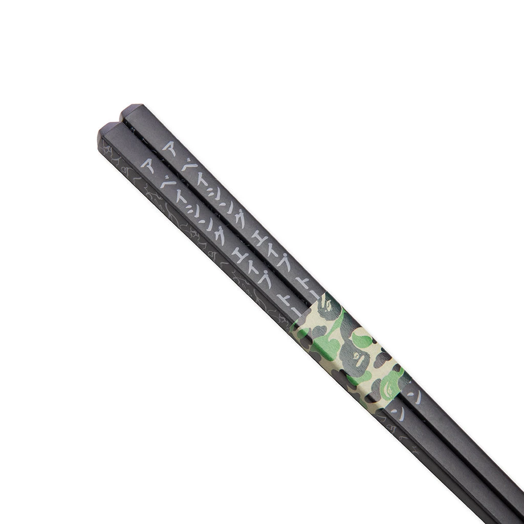 The Abc Line Camo Wood Chopsticks in Black blend traditional dining essentials with a bold street-inspired aesthetic. Adorned with a Katakana logo and rubber print details, their ABC LINE CAMO pattern brings a modern edge to every meal. Crafted from wood, they are both stylish and functional—a unique way to elevate your dining experience.