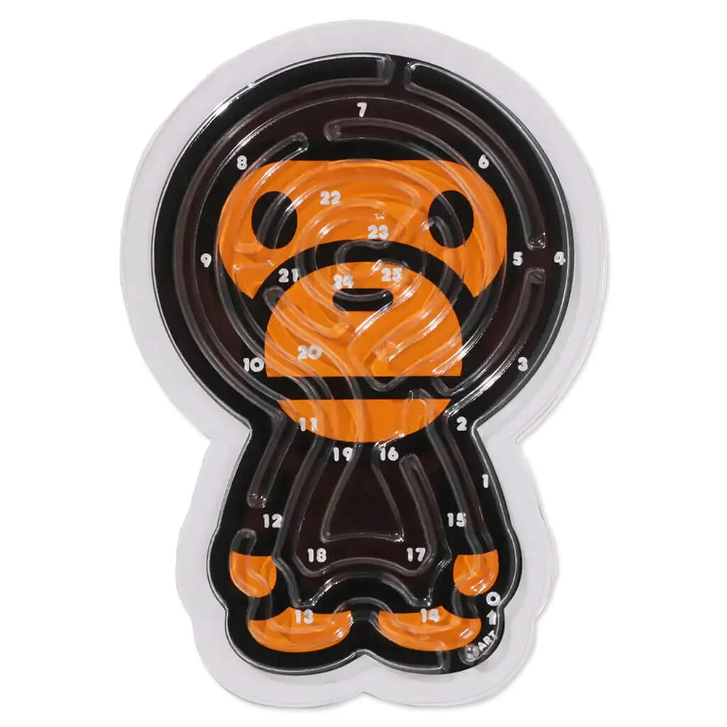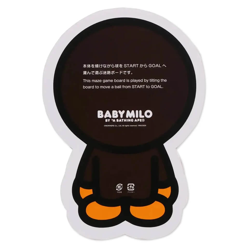 BAPE introduces the Baby Milo 25th Anniversary Maze Game. In a layout shape of Baby Milo, this maze game is made out of paper, polyethylene, iron. Tilt the board to start playing and see how fast you can go, starting where it says “START” and making your way into the “GOAL”.
