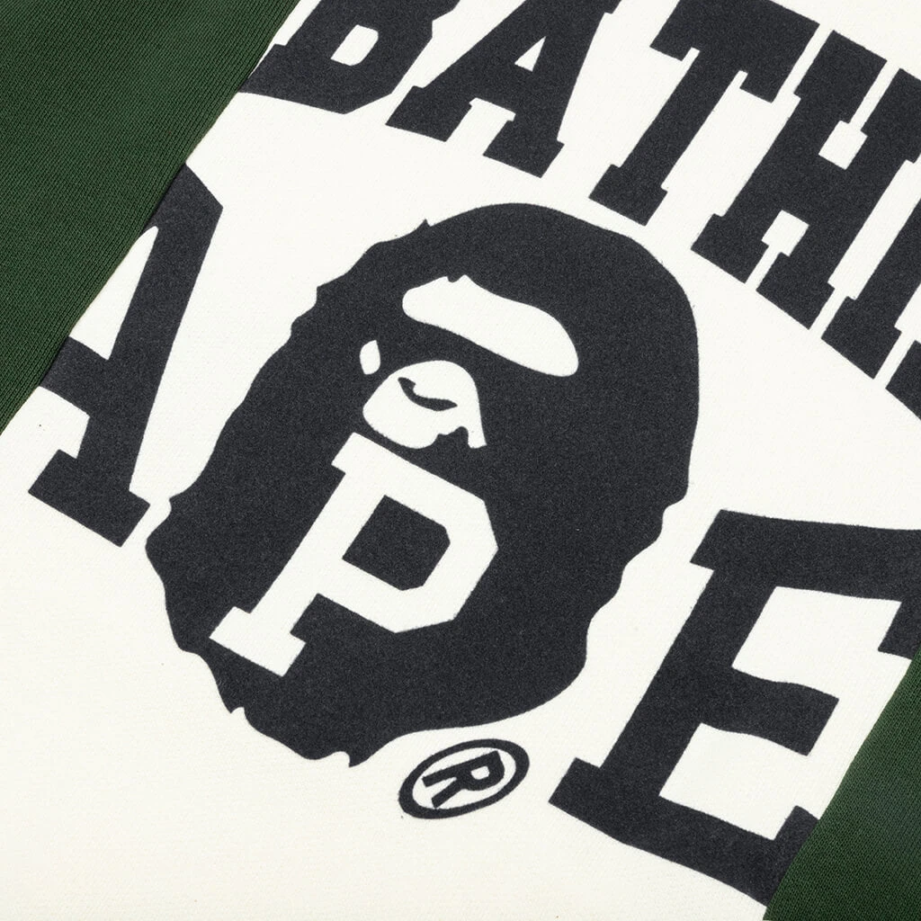 Considered one of Japan’s original streetwear brands, BAPE welcomes the Badges Color Blocking Pullover Hoodie into their newest collection of apparel. Making a statement in any wardrobe, the cotton-cut hoodie utilized a pullover design with a drawstring hood. The garment features signature BAPE branding throughout. Finishes include ribbed cuffs and a kangaroo pouch.