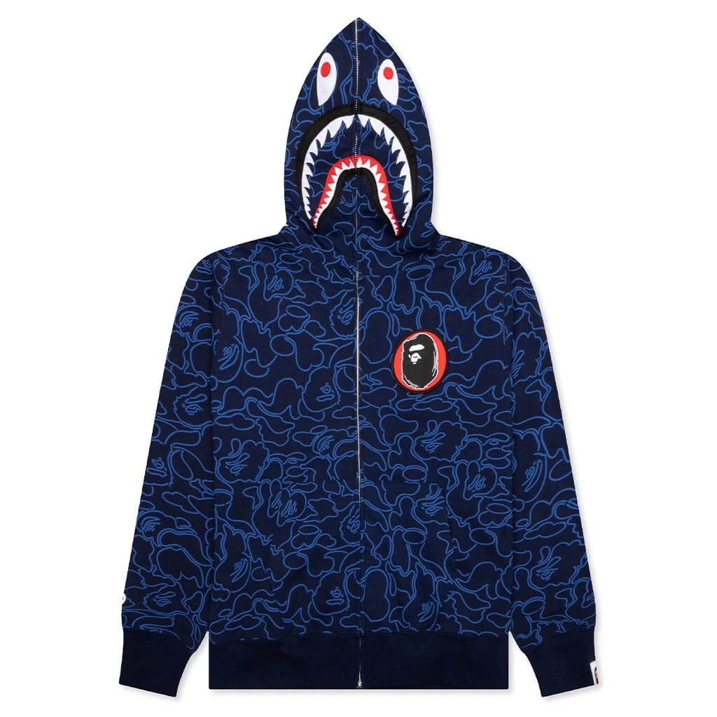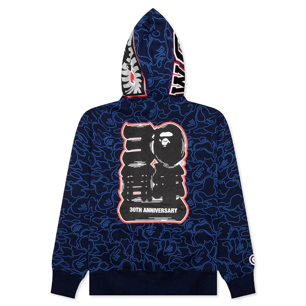 Composed of cotton, the A Bathing Ape 30th Anniversary Line Camo Shark Full Zip Hoodie takes on a premium aesthetic. The silhouette features a full-zip closure in addition to ribbed detailing that can be found at the trims. The kangaroo pocket is seen, while the signature hood spotlights embroidered patchwork and printed motifs that spotlight the brand’s heritage.
