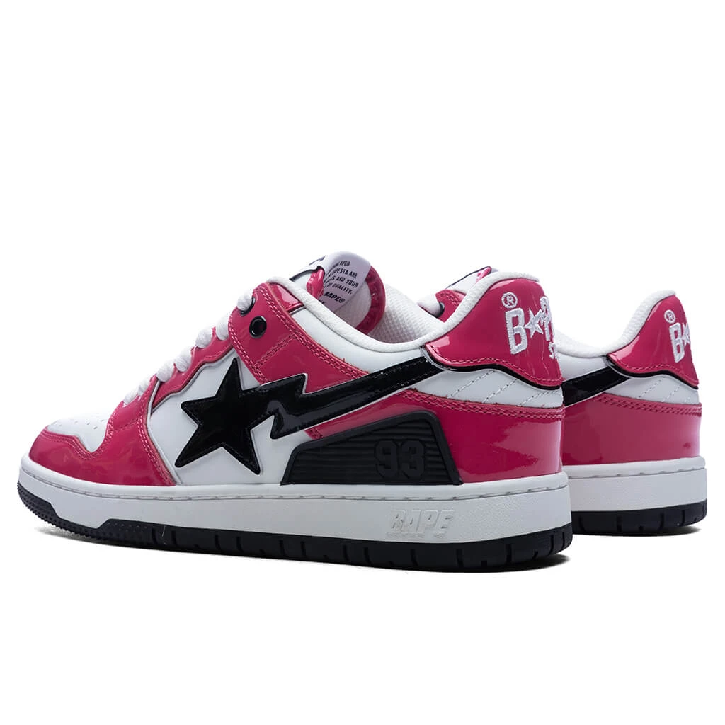 A bold evolution of BAPE’s signature sneaker design, the SK8 STA #2 blends premium materials with unmistakable street energy. This silhouette arrives in a fresh colorway, constructed from a mix of materials like patent and smooth leather for a dynamic, layered look. Graphic appliqués at the side panel nod to the brand’s iconic motifs, while a logo patch at the padded tongue and a branded heel tab reinforce its heritage. The shoe is finished with a mesh lining, cushioned midsole with logo detailing, and a treaded rubber outsole.
