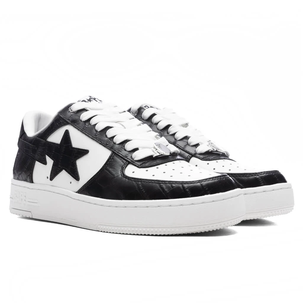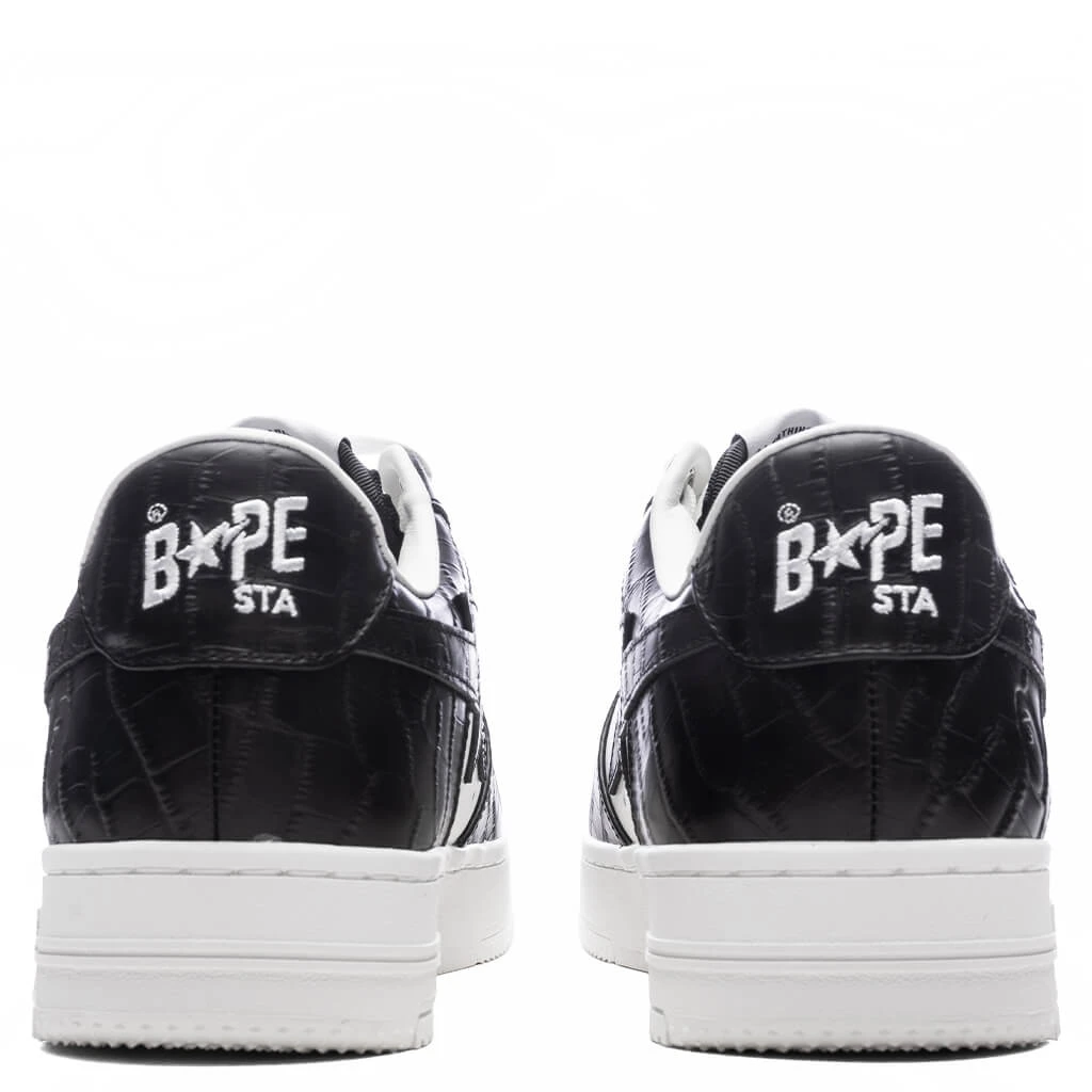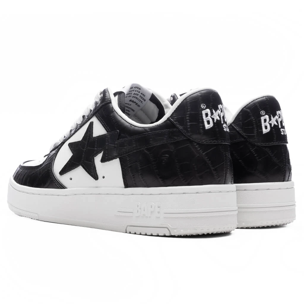 The Bape STA OS #3 M2 in Black reimagines the classic silhouette with refined details. A leather upper pairs with patent leather overlays, adding a sleek, layered look. The exaggerated STA logo stands out against the design, while the perforated toe box enhances breathability. Finishing touches include a branded dubraé and embroidered heel for signature branding elements that elevate this timeless style.