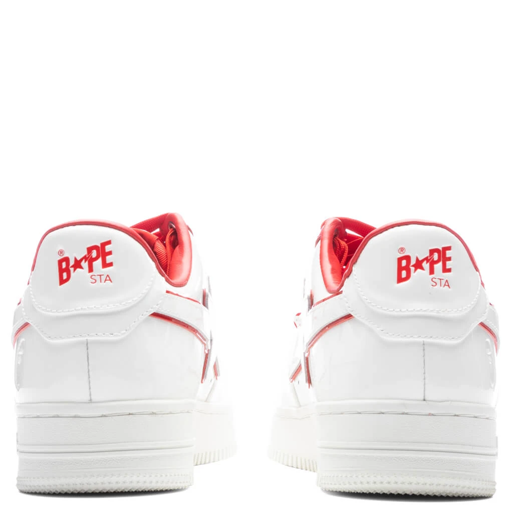 The Bape Sta #8 makes a statement with its leather upper and patent leather details at the lace-up closure and collar. The signature ‘STA’ star logo at the laterals is also placed, while the custom lace lock and perforations add further detailing. The rubber outsole underneath completes the rest of the design.
