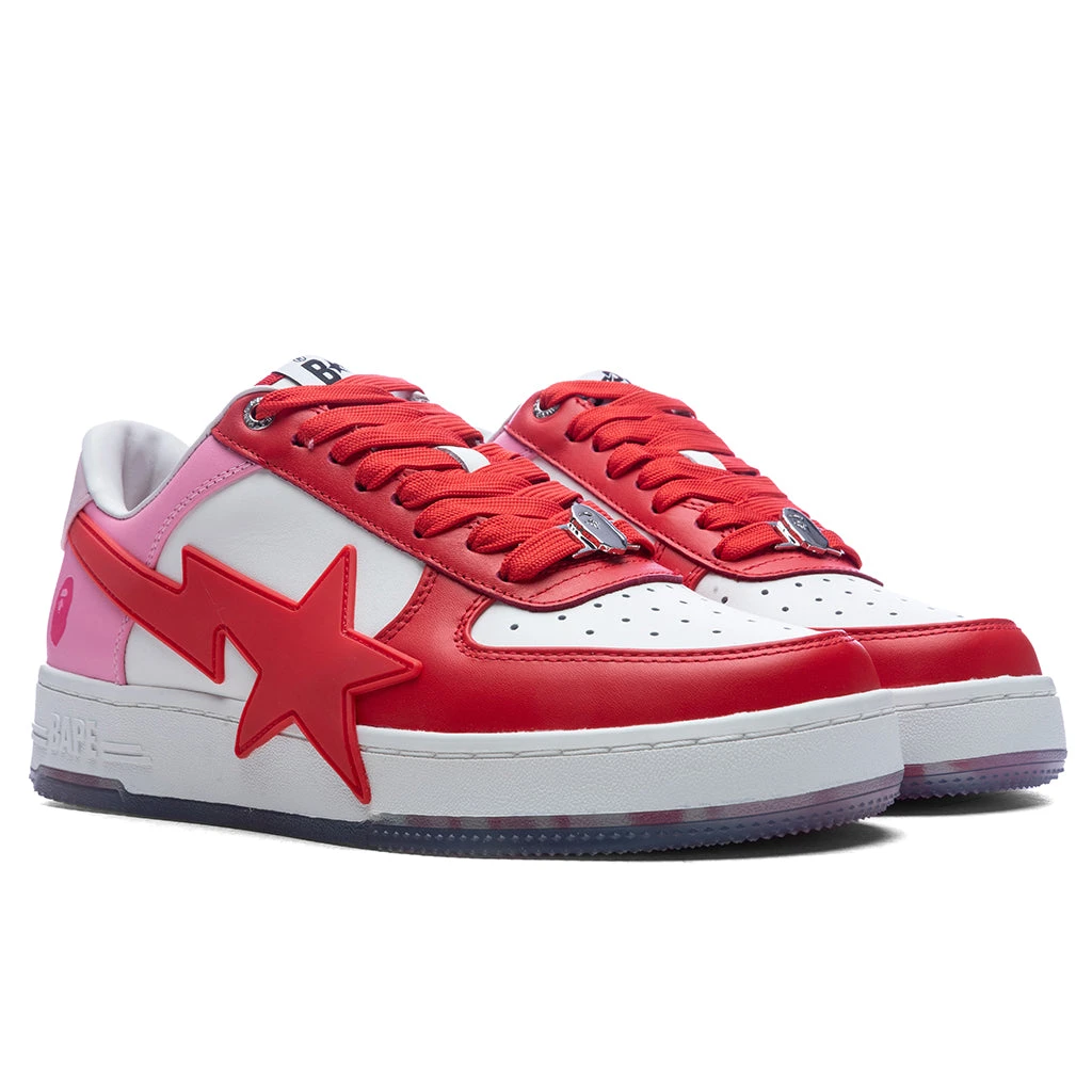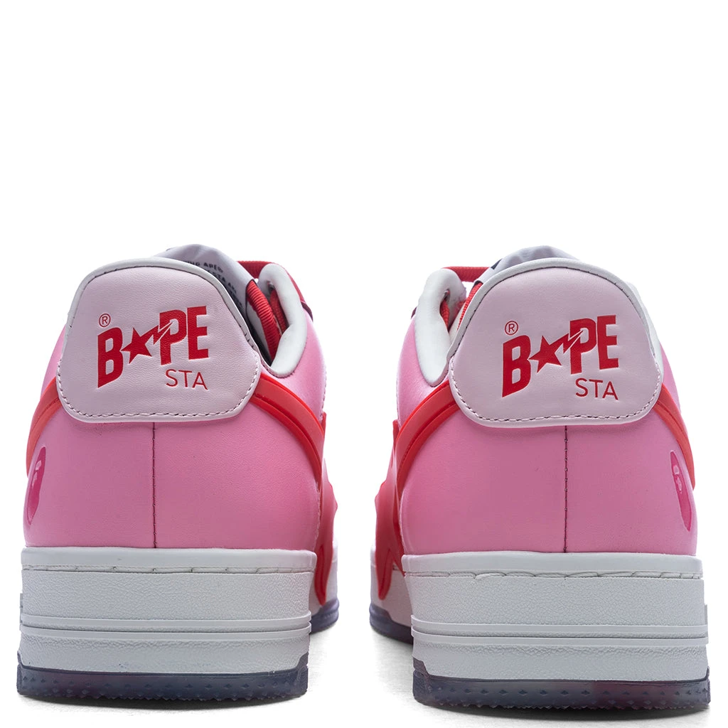 The Bape STA OS M2 in Pink reimagines the classic silhouette with refined details. A leather upper pairs with patent leather overlays, adding a sleek, layered look. The exaggerated STA logo stands out against the design, while the perforated toe box enhances breathability. Finishing touches include a branded dubraé and embroidered heel for signature branding elements that elevate this timeless style.