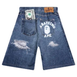 Kid’s Bape Denim Print Sweat Shorts – Navy