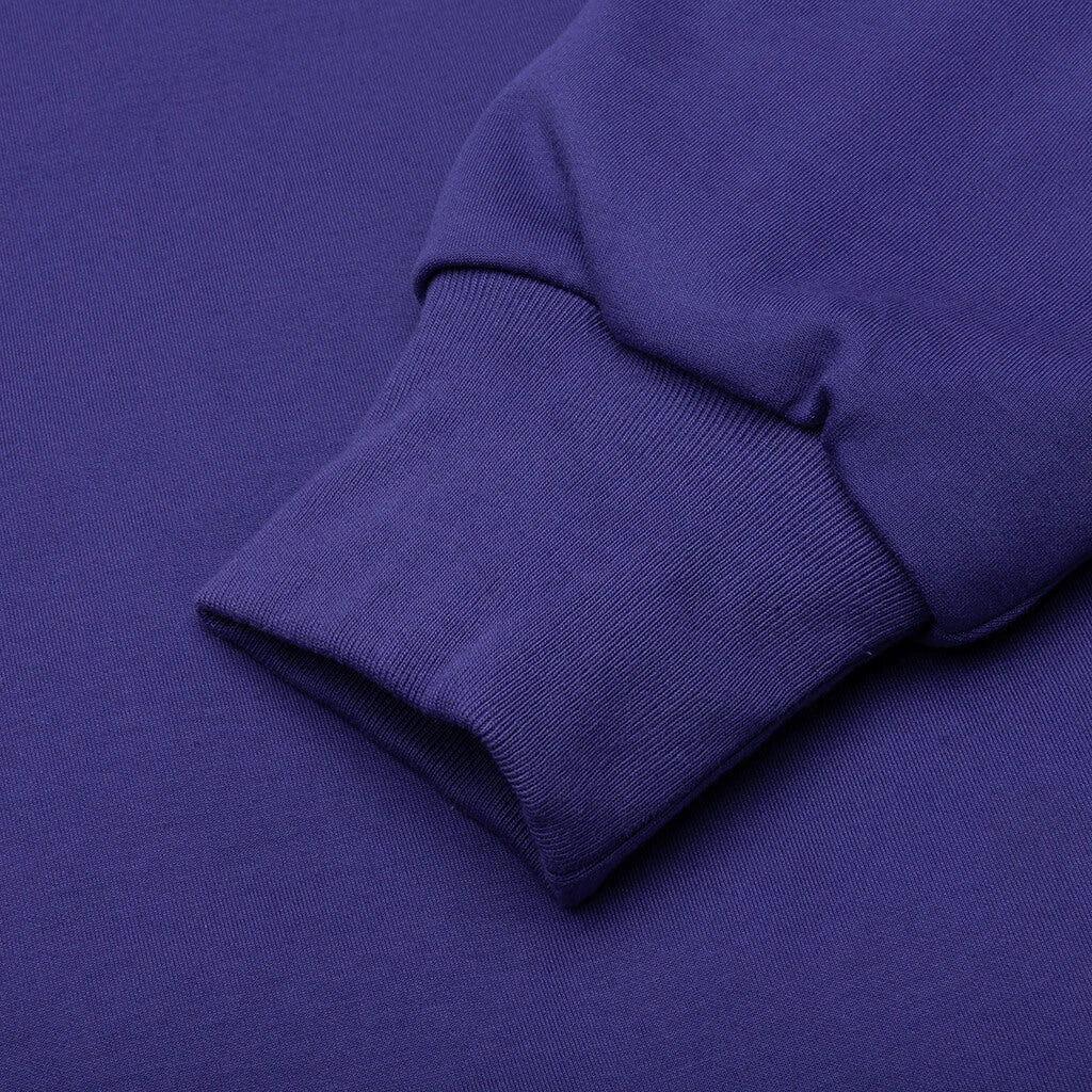 The College Puffy Relaxed Fit Pullover Hoodie in Blue combines comfort with a bold aesthetic. Crafted from cotton with polyester filling, this hoodie offers a relaxed fit and added warmth. It features an attached fixed hood, a practical pouch pocket, and ribbed cuffs and hem for a secure finish. A screen-printed graphic at the front adds a striking visual detail, making it a standout addition to your casual wardrobe.