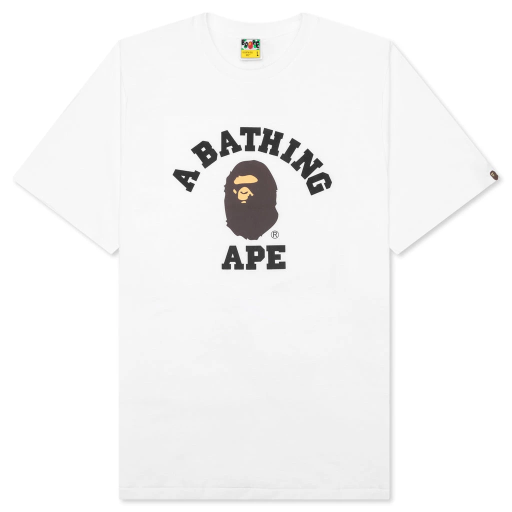 The College Tee in White is made from cotton and features a rib-knit crewneck for added comfort. The front showcases a bold logo and graphic print, while a logo patch at the cuff adds a subtle finishing touch. This tee is a versatile addition to any wardrobe, offering both style and comfort.