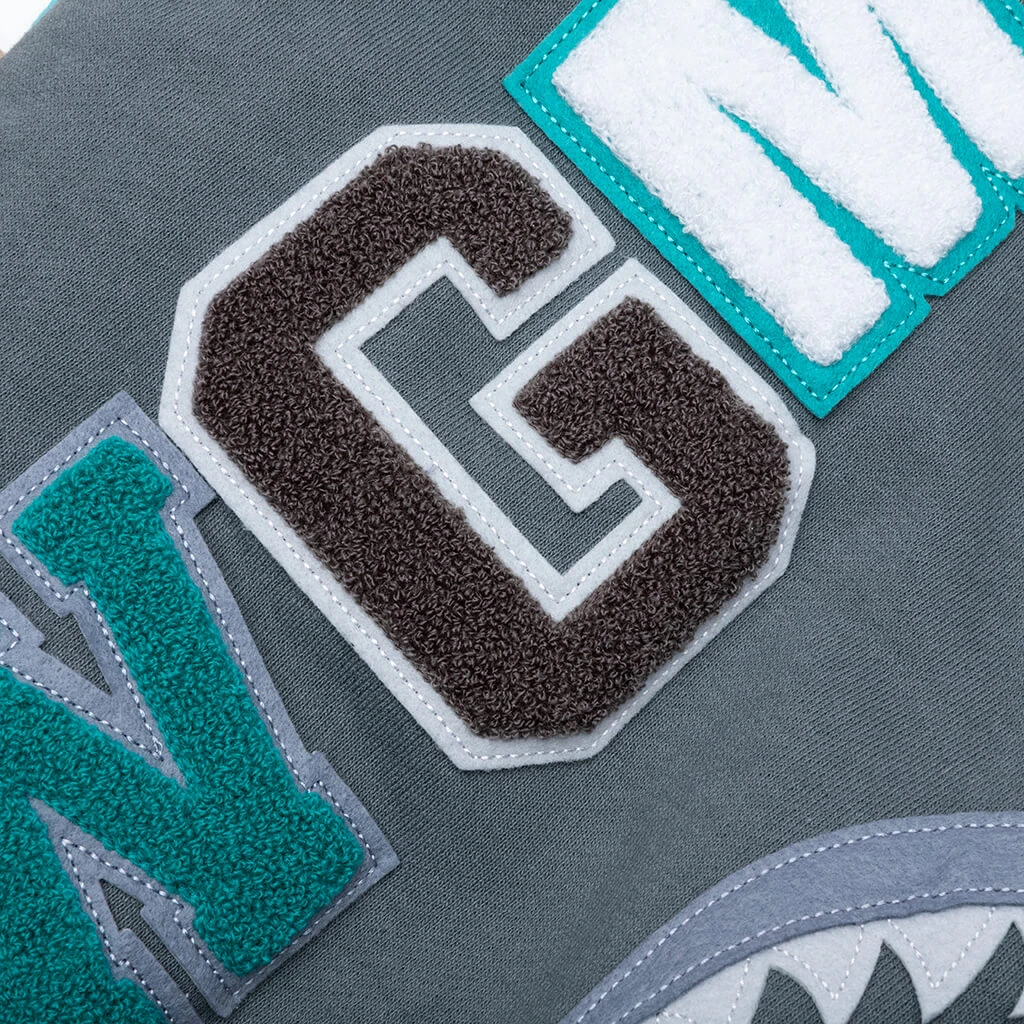 - Felt patch shark face graphics on hood
