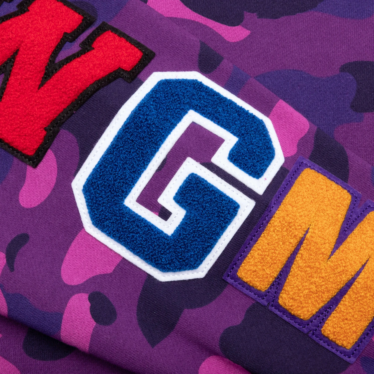 The A Bathing Ape Color Camo Embroidery Shark Crewneck makes an impression with its aesthetic. The silhouette features a cotton blend in addition to ribbed detailing at the trims. An array of screen-printed and embroidered branding and graphics are seen throughout. The camo print finishes the look.