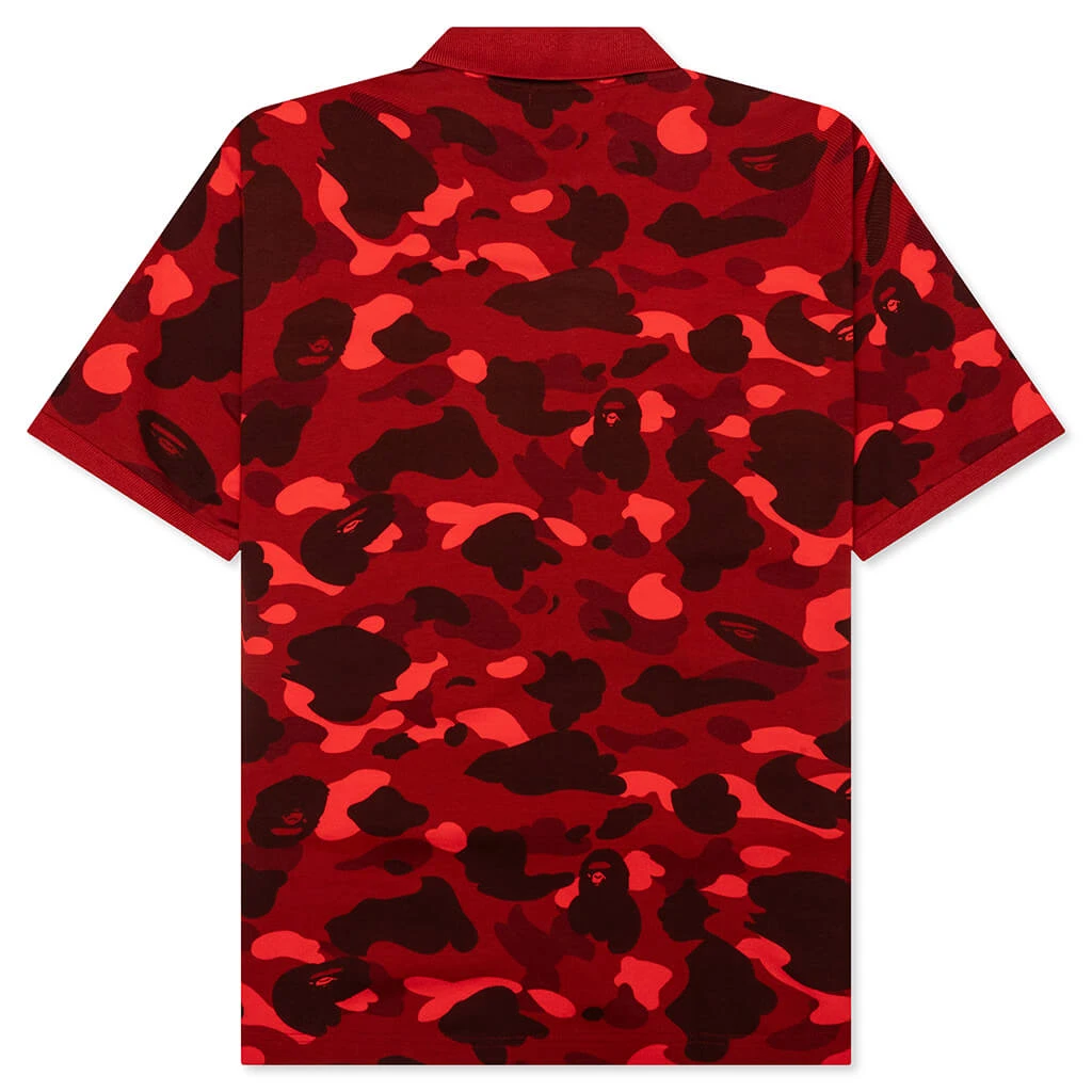 The Color Camo Large Ape Head Relaxed Fit Polo Shirt in Red combines a classic polo style with bold BAPE branding. Crafted from cotton, it features a three-button placket and ribbed trims for a polished look. The embroidered Ape Head branding adds a signature touch, making it a standout piece with a relaxed fit for everyday wear.