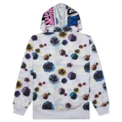 The Color Camo Separate Shark Full Zip Hoodie in Multi brings a vibrant twist to a classic design. Made from cotton, this full-zip hoodie features bold embroidered patchwork and printed graphics, along with the signature Bape Camo print. Complete with a kangaroo pocket and ribbed trims, this hoodie combines style and practicality for a standout look.