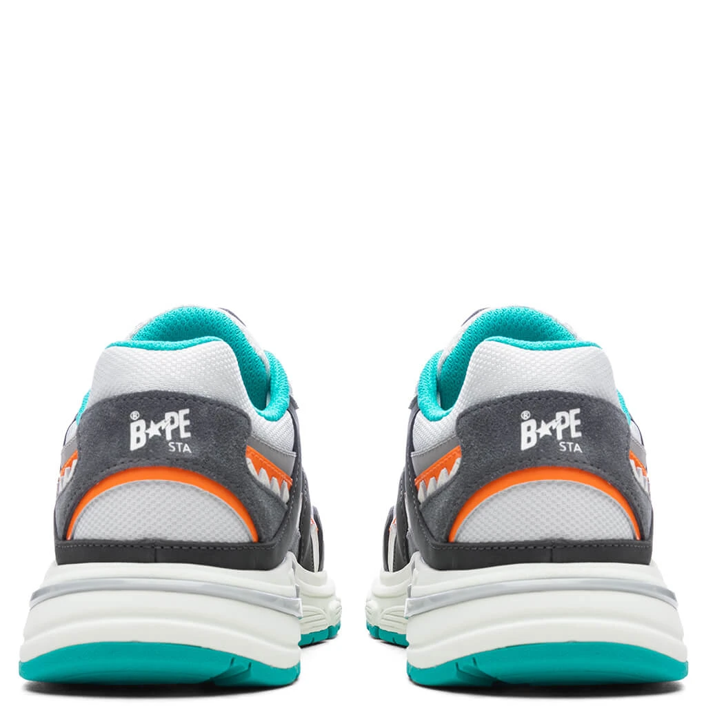 The Bape Shark Sta in Gray, exclusively available at FEATURE, brings together bold design elements with standout materials. Constructed with a mix of mesh, suede, patent leather, and nubuck details, this unique release balances texture and style. A semi-transparent, glossy Sta detail and durable rubber outsole complete the design, making it a collector’s piece that embodies Bape’s iconic aesthetic.