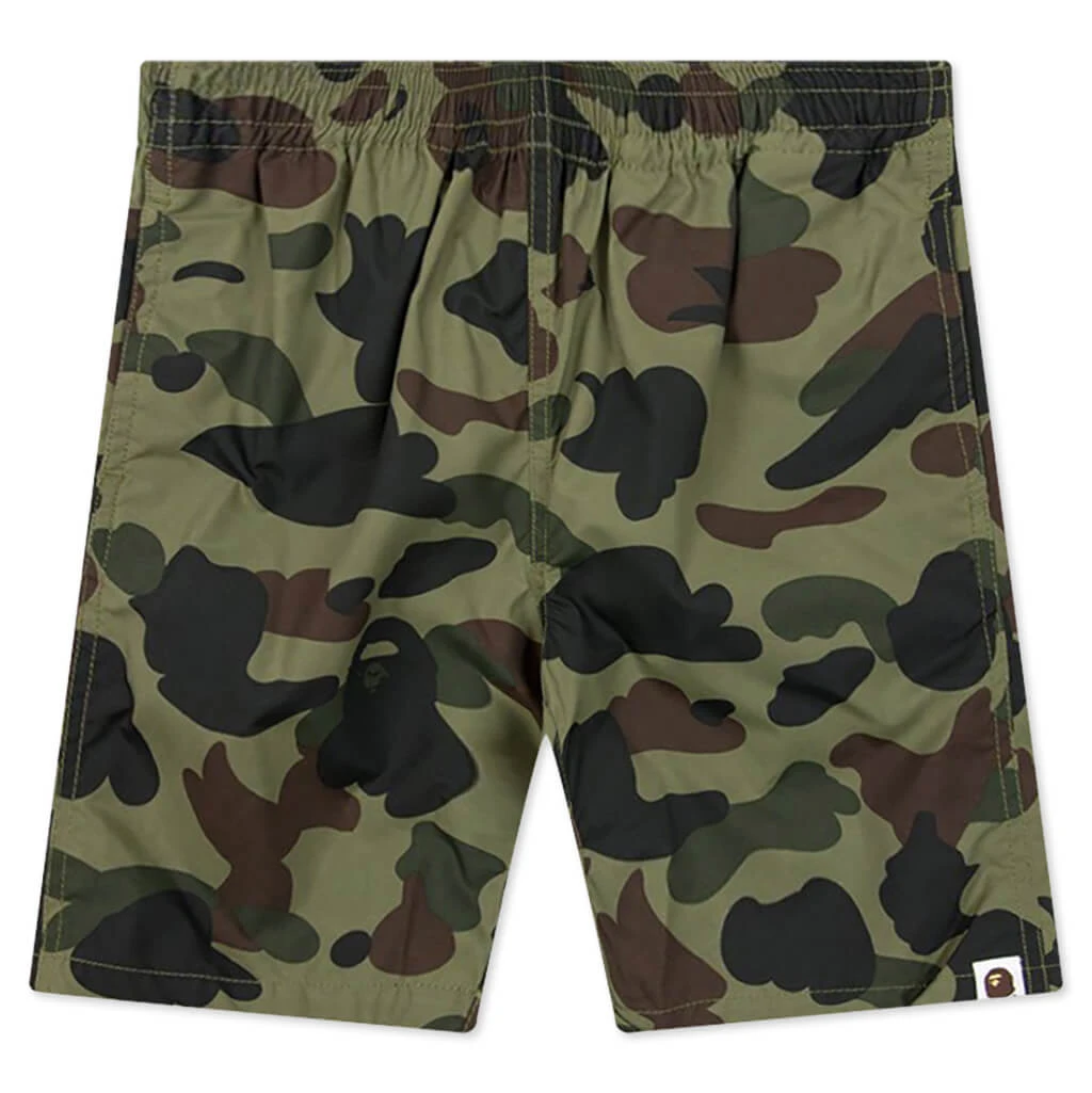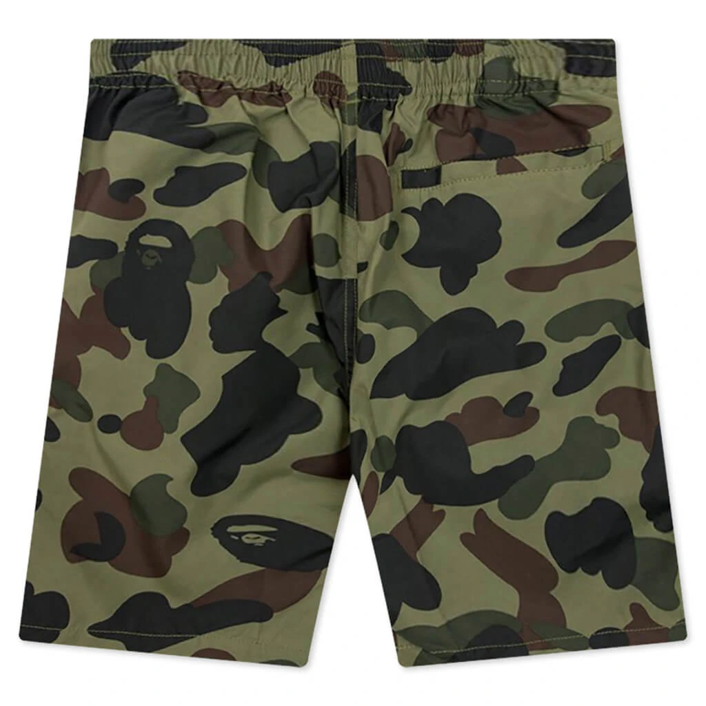 The Kid’s 1ST Camo Beach Pants is crafted from 100% cotton. Designed with a elastic waistband and side pockets, the pants are adorned in a camo pattern. Finished with a embroidered BAPE logo on the thigh and a woven label tag for authenticity.