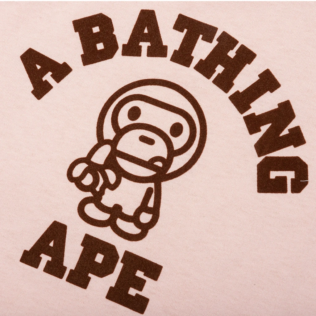 BAPE’s Kid’s Baby Milo College Tee in Pink is crafted from pure cotton, ensuring comfort and durability. This tee features a regular fit and showcases a playful, screen-printed design of Milo. A woven label on the sleeve adds a subtle touch of branding.
