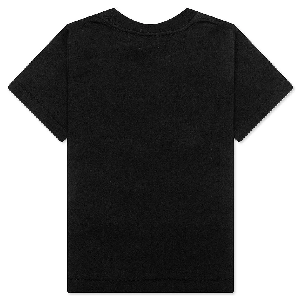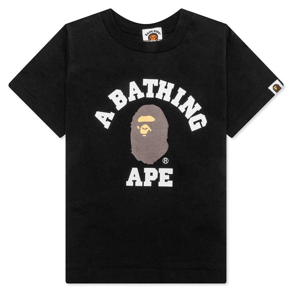 BAPE’s Kid’s College Tee in Black is crafted from pure cotton, ensuring comfort and durability. This tee features a regular fit and showcases a playful, screen-printed design. A woven label on the sleeve adds a subtle touch of branding.