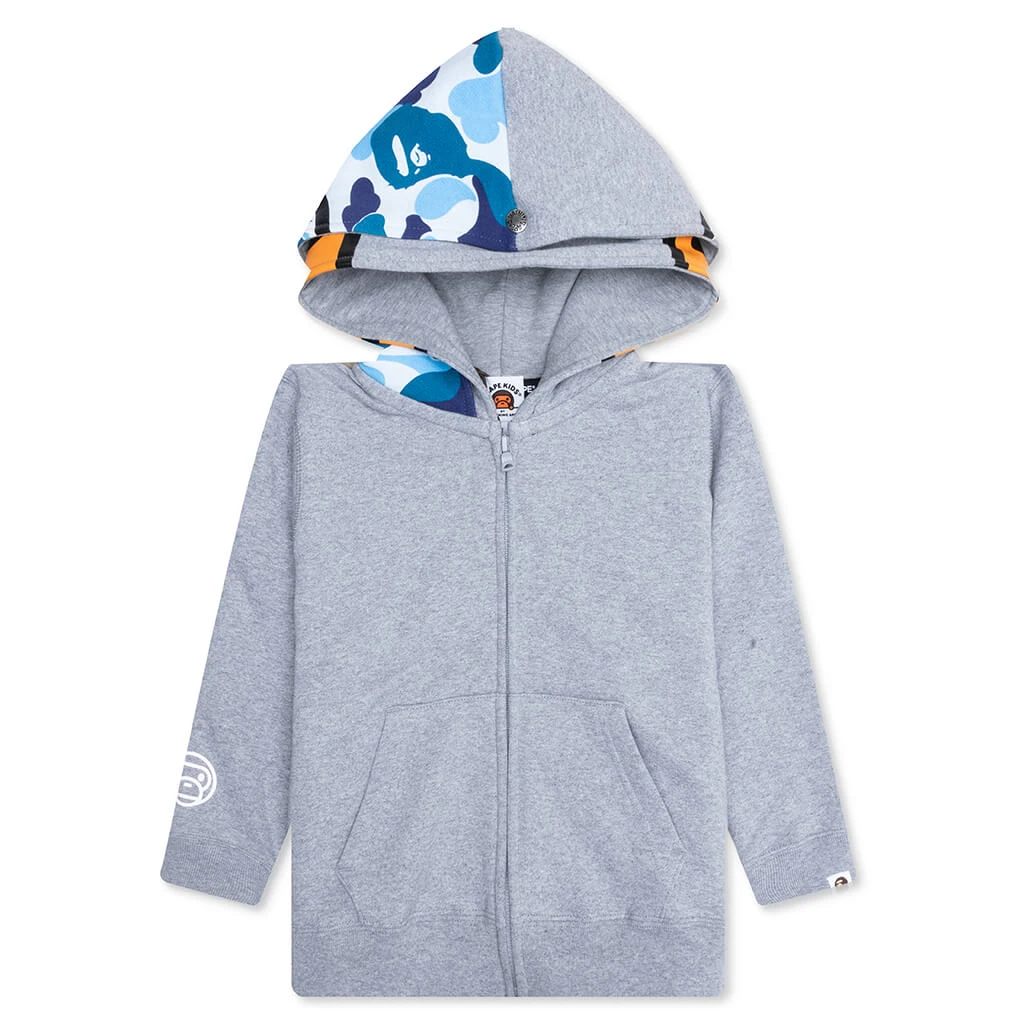The Kid’s Milo Shark Zip Double Hoodie puts a playful twist on a classic silhouette with A Bathing Ape’s unique double-hood design. Made from 100% cotton for a soft, comfortable feel, it features a zip-up closure and a kangaroo pocket. The double hood is adorned with bold screen-printed graphics, while the sleeve showcases BAPE’s iconic Baby Milo face for a fun, signature touch.