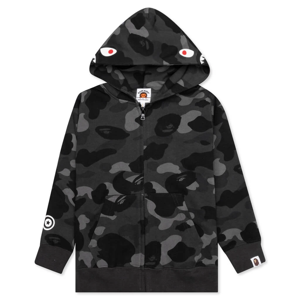 Composed of cotton, the A Bathing Ape Color Kid’s Camo Shark Zip Hoodie takes on a premium aesthetic. The silhouette features a full-zip closure in addition to ribbed detailing that can be found at the trims. The kangaroo pocket is seen, while the signature hood spotlights embroidered patchwork and printed motifs that spotlight the brand’s heritage.