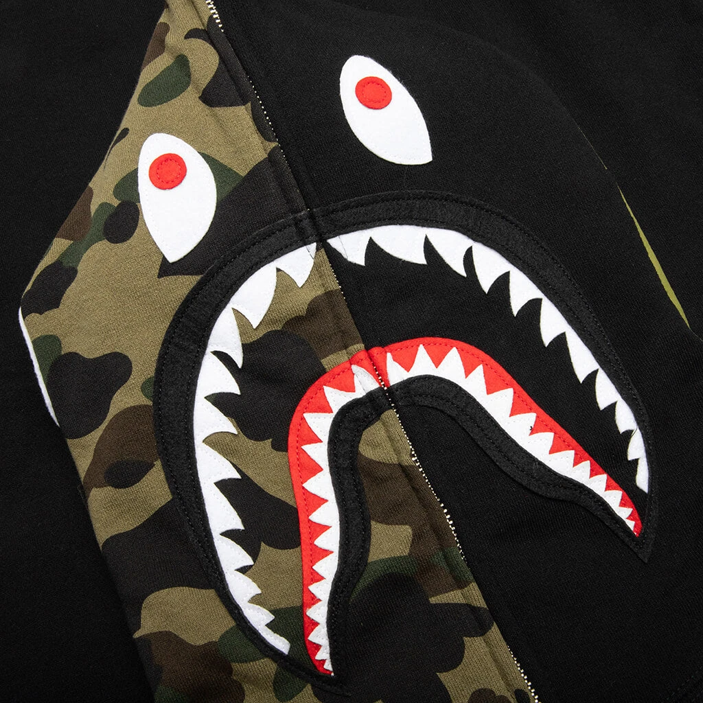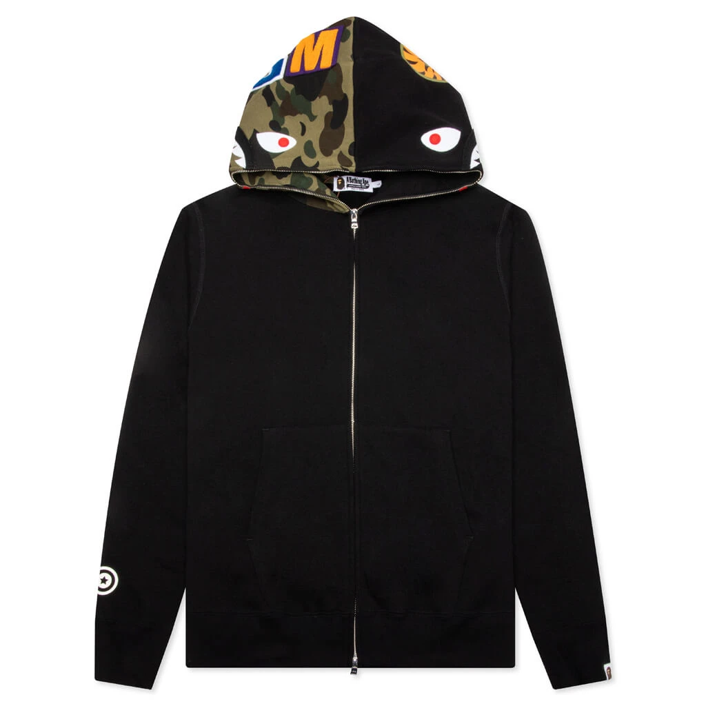 Cut from a cotton blend, the BAPE Crazy Shark Wide Fit Full Zip Double Hoodie makes a statement within any streetwear apparel rotation. The design incorporates a wide fit paired with a double hood. Ribbed detailing can be seen at the cuffs and hem. A full-zip closure is seen, while the kangaroo pocket provides a functional touch. An all-over camo print is seen, with additional embroidered graphics at the hoods wrap up the look.