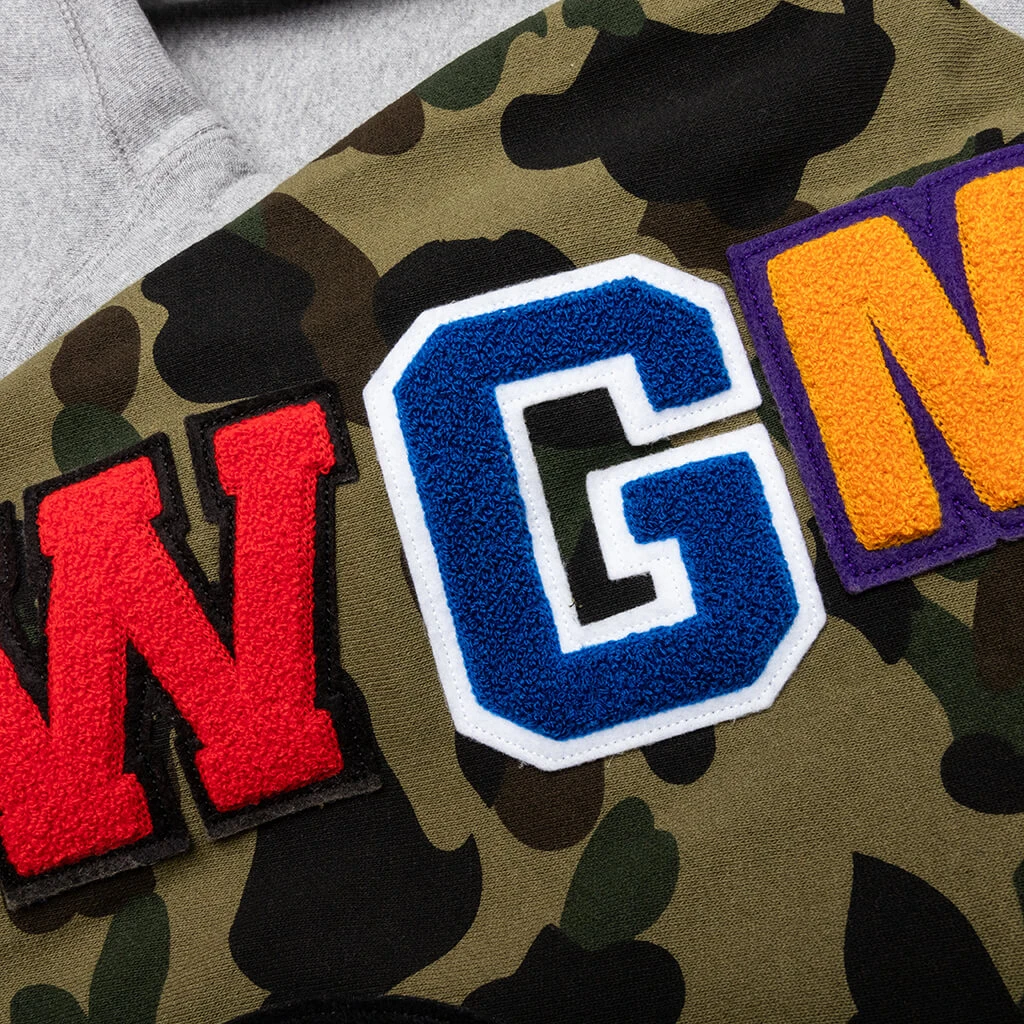 Cut from a cotton blend, the BAPE Crazy Shark Wide Fit Full Zip Double Hoodie makes a statement within any streetwear apparel rotation. The design incorporates a wide fit paired with a double hood. Ribbed detailing can be seen at the cuffs and hem. A full-zip closure is seen, while the kangaroo pocket provides a functional touch. An all-over camo print is seen, with additional embroidered graphics at the hoods wrap up the look.