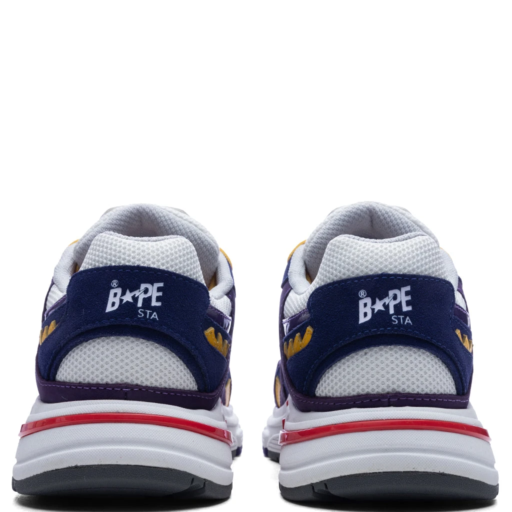 A bold evolution of BAPE’s signature sneaker design, the Shark STA blends premium materials with unmistakable street energy. This low-top silhouette arrives in a fresh colorway, constructed from a mix of materials like patent leather, suede, and mesh for a dynamic, layered look. Graphic appliqués at the side panel nod to the brand’s iconic motifs, while a logo patch at the padded tongue and a branded heel tab reinforce its heritage. The shoe is finished with a mesh lining, cushioned midsole with logo detailing, and a treaded rubber outsole.
