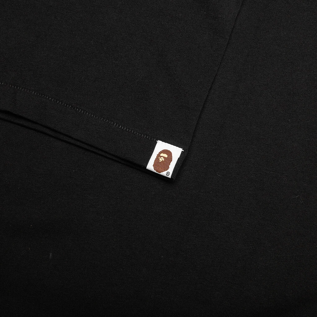 A Bathing Ape’s Logo Relaxed Fit Tee in Black is crafted from pure cotton. This tee features screen printed branding on both the front, complemented by a brand label on the sleeve. The relaxed fit and subtle details provide a casual yet stylish look.