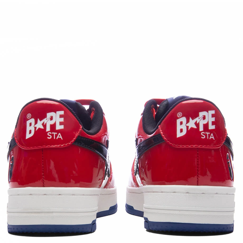 The Bape STA #1 in Red delivers a bold and striking look with its patent leather upper. Highlighted by a crystal-embellished STA logo on the side panel, this sneaker blends statement-making design with timeless details. A perforated toe box enhances breathability, while the rubber midsole and outsole ensure comfort and durability. Finished with a branded dubraé and embroidered heel branding, this style is a standout addition to any collection.